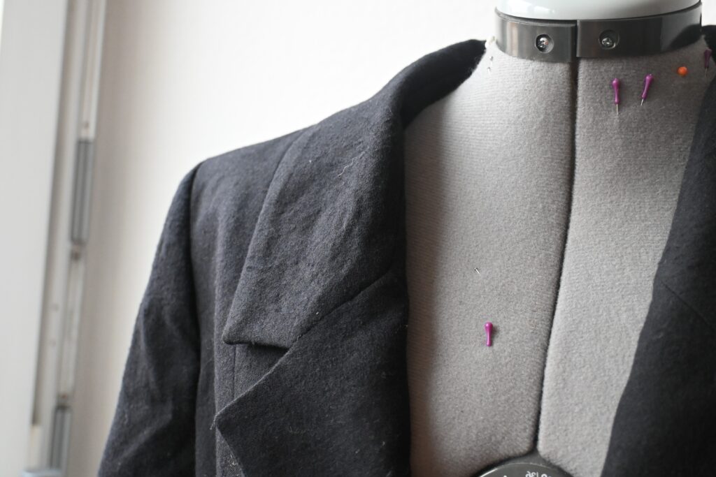 Nicht nur der emotionale Wert bewegte mich dazu diesem Teil neues Leben ein zu hauchen. Auch der Aspekt der Nachhaltigkeit lag mir dabei sehr am Herzen. Die elegant, taillenbetonte Sihlouette des Blazers sollte bei der Neuaufwertung nicht verloren gehen. Auch sollte es ein alltagstaugliches Teil bleiben.